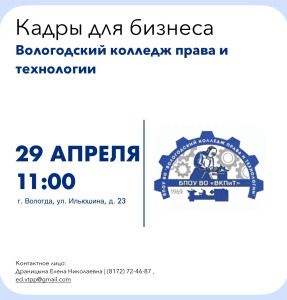 Кадры для Бизнеса: «Вологодский колледж права и технологии».